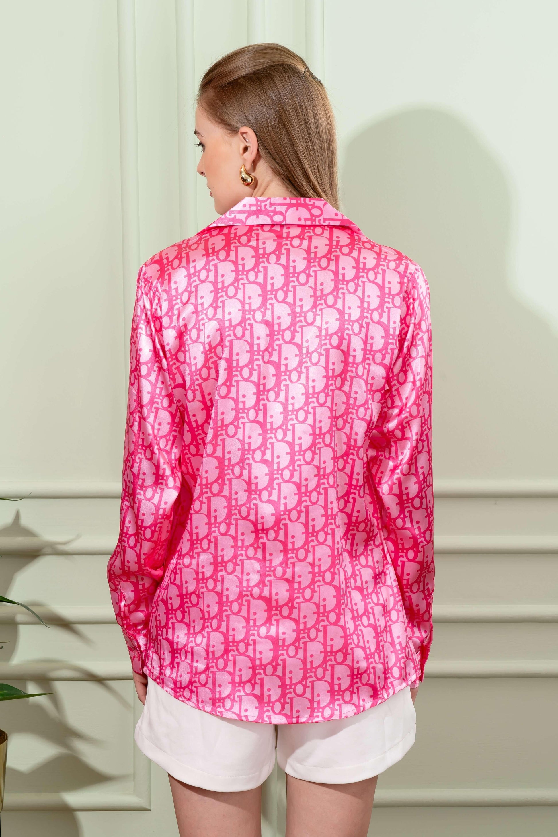 Brand Print Pink Satin Shirt